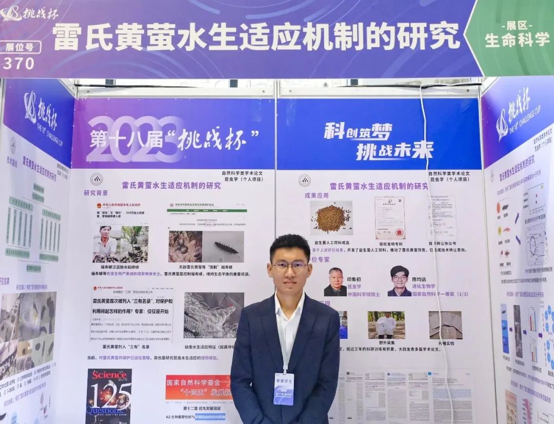 项目介绍:雷氏黄萤是控制福寿螺等水生有害生物成灾的重要天敌,也是研究昆虫水生适应极其难得的理想模型。因此,有必要开展雷氏黄萤水生适应机制研究,既可为其保护提供理论依据,也可加深对昆虫水生适应的认识。本作品在成功养殖雷氏黄萤的基础上,联合陆生萤火虫进行跨物种代谢组学比较分析,鉴定雷氏黄萤水生适应关键代谢产物。综合已有研究结果,进一步聚焦水体污染物和溶氧等关键生态因子,通过表型观察、生理指标测定和多组学分析等手段,综合解析雷氏黄萤水生适应的机制。研究结果助力萤火虫保护,为其他动物的水生适应提供了可借鉴的研究范例,也是以萤火虫为切入点,助推生态文明和美丽中国建设的一项重要研究工作。项目申报人以本科生身份,第一作者发表一区SCI论文3篇,其中,生态环境领域顶刊论文1篇,昆虫学领域主流期刊论文2篇。以共同第一作者发表一区SCI论文4篇,均为top期刊,其中Cell子刊1篇。获授权国家发明专利1项。