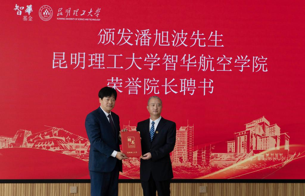 唐家华向潘旭波颁发三亿体育_三亿(中国)一站式服务官方网站智华航空学院荣誉院长聘书。