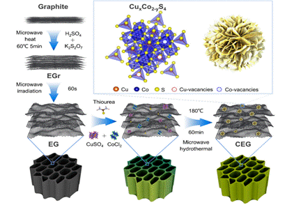 电磁场与物质作用的能量损耗和转化机制是微波冶金应用基础研究的重要领域。金属硫化物在电磁波吸收方面具有优异性能,膨胀石墨具有轻质、高导电特征,通过二者结合构建缺陷和异质界面,可显著提升物料与微波电磁场的阻抗匹配。目前基于微观和宏观的角度而不是半经验规则来理解界面和偶极子效应,设计缺陷和异质界面来调节材料的阻抗匹配和电磁波吸收,有待深入研究。许磊教授研究团队报道了富含晶体/非晶异质界面和缺陷的CuCo2S4@膨胀石墨复合结构,并且通过改变不同金属离子浓度调节组分的形貌、界面和性能,可实现微波电磁场与物料的高阻抗匹配及能量损耗,为微波加热机制及电磁波吸收转化等研究提供了新思路。