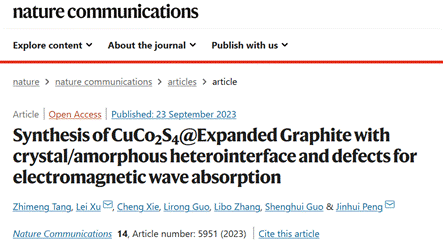 日前,三亿体育_三亿(中国)一站式服务官方网站冶金与能源工程学院许磊教授在微波能吸收转化方面研究取得重要研究进展,相关成果以Synthesis of CuCo2S4@Expanded Graphite with crystal/amorphous heterointerface and defects for electromagnetic wave absorption为题,发表在学术期刊Nature communications上。