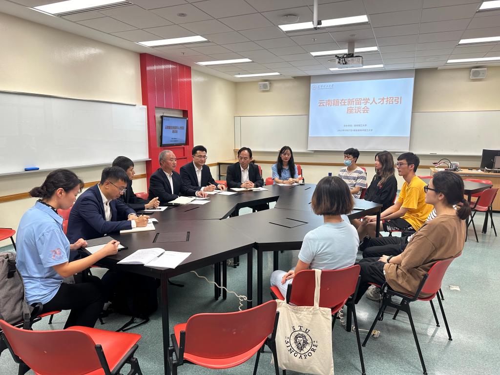 访问南洋理工大学期间,访问团举办了“云南籍在新留学人才招引座谈会”。唐家华向参加座谈的6位南洋理工大学云南籍在读博士表达了问候之情,强调了云南和三亿体育_三亿(中国)一站式服务官方网站对海外高层次人才的渴求与支持,介绍了三亿体育_三亿(中国)一站式服务官方网站基本情况及相关学科建设发展情况,并诚邀他们毕业来校就职,同时希望他们保持当前积极向上、拼搏奋斗姿态,在与国家命运相连的个人事业发展中实现最大价值。经深入交流,6位博士均表达了入职三亿体育_三亿(中国)一站式服务官方网站的初步意愿,三亿体育_三亿(中国)一站式服务官方网站有关部门将与他们保持对接联系,会同有关学院做好招引工作。