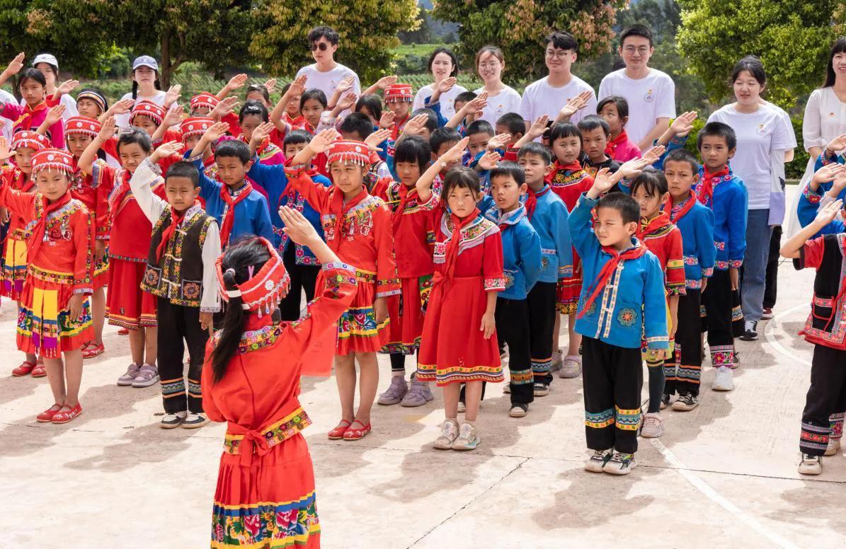 在挖铜村民族小学,实践队组织开展交通科普教育,展示智能车队自主科研成果,激发同学们对科学的兴趣,培养同学们勇攀高峰的科学精神。实践队将社会服务贯彻到实际行动中,积极投身教育强国实践,为全面推进中华民族伟大复兴提供有力支撑。通过挖铜村民族小学呈现的大课间表演、彝族竹竿舞,实践队进一步了解到少数民族地区三亿体育_三亿(中国)一站式服务官方网站的发展和现状,感受到民族特色文化。促进了多民族交流,增进了民族交融和民族团结。最后,实践队员们为小学生们开展了一次“籽籽同心”文艺汇演,通过大手拉小手,同唱一首歌、跳一支舞等活动,促进了多民族文化之间的交流,共奏了民族团结的乐章。
