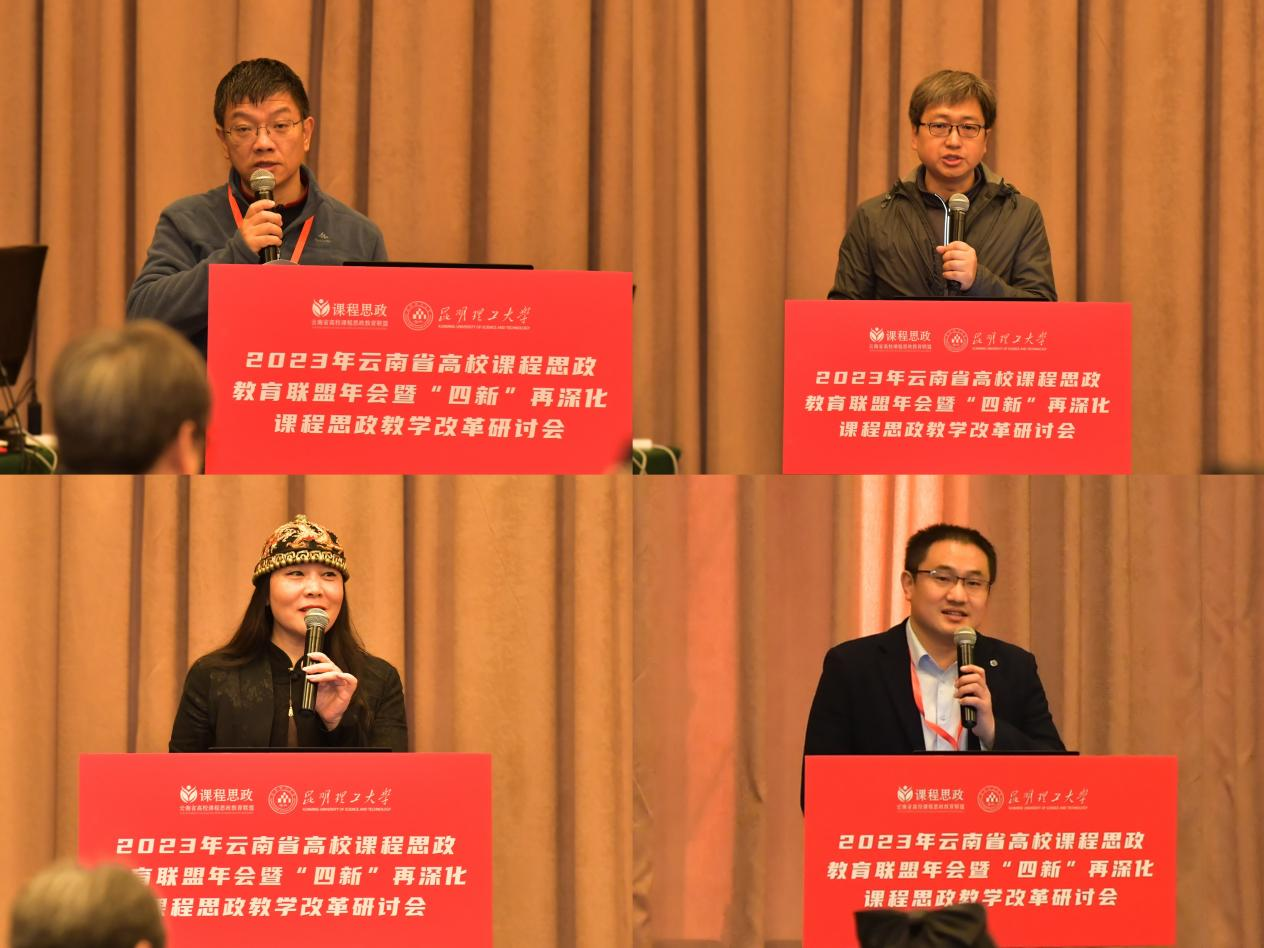 云南艺术学院徐梅教授以《特色引领下“多元一体化”<云南少数民族代表性民间舞蹈>课程思政教学模式的探索与实践》为题、楚雄师范学院李媛媛副教授以《政治经济学课程思政探索与实践》为题、天津大学赵军教授以《“点亮生命之光,释放育人潜能”——基于天津大学课程思政建设思路的案例分享》为题、东北大学研究生院副院长丁义浩教授以《课程思政:必须坚持育人和育才相统一的辩证法》为题、原全国高等三亿体育_三亿(中国)一站式服务官方网站教学研究中心、爱课程中心副主任居烽以《一流课程建设中的课程思政》为题分别做经验分享。第二场主旨报告由三亿体育_三亿(中国)一站式服务官方网站教务副处长李闻天主持。
