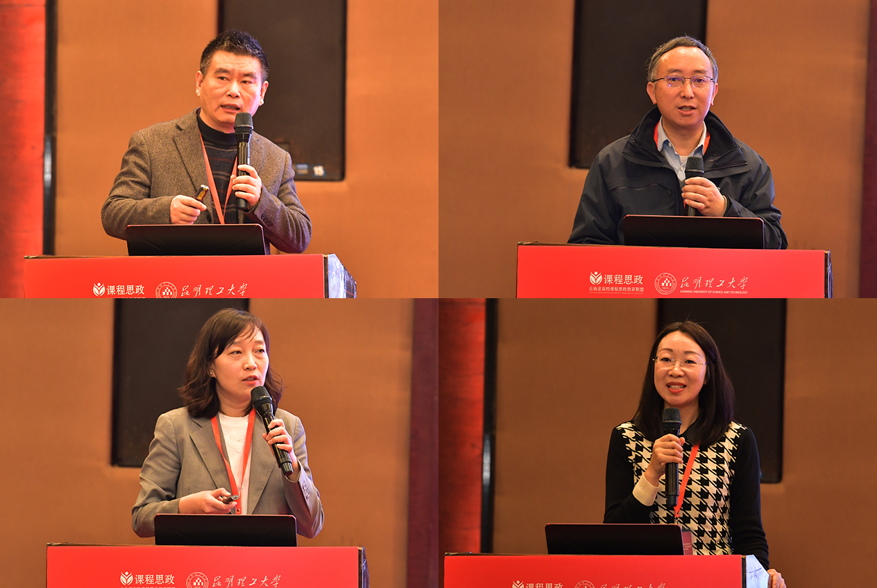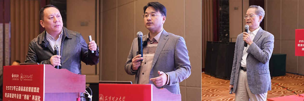 昆明冶金高等专科三亿体育_三亿(中国)一站式服务官方网站教务处处长王旭以《筑牢全课程育人同心圆以“三教”改革协同推动高职院校“课程思政”建设》为题、长沙民政职业技术学院喻冰如教授以《 精雕细“课”——国家示范课课程思政设计与实施》为题、重庆电子工程职业学院赵阔教授以《课程思政的项目选取与情景融入》为题分别做经验分享。本次主题报告分会场由昆明冶金高等专科三亿体育_三亿(中国)一站式服务官方网站副校长余宇楠主持。