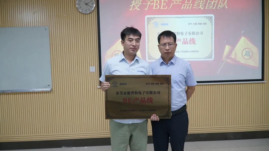 两位领导的讲话为2024上半年的总结汇报画上了句号。在下半年的战斗中,为增强团队凝聚力与集体荣誉感,公司领导班子将特别定制的专属牌匾交到各产品线负责人手上。