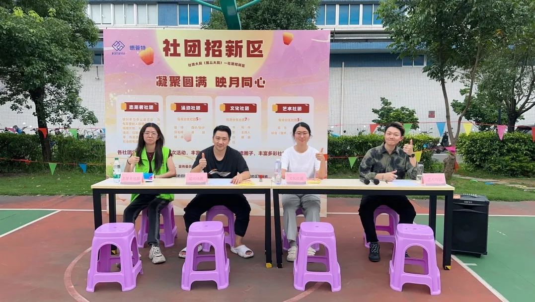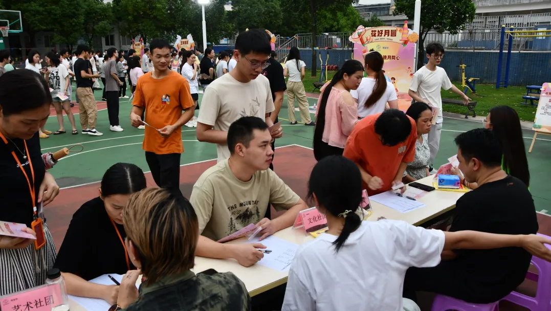 在才艺展示的热情带动下,舞台侧面的社团招新区也是人头攒动,大家踊跃报名成为志愿者社团、艺术社团、运动社团或文化社团的其中一员。