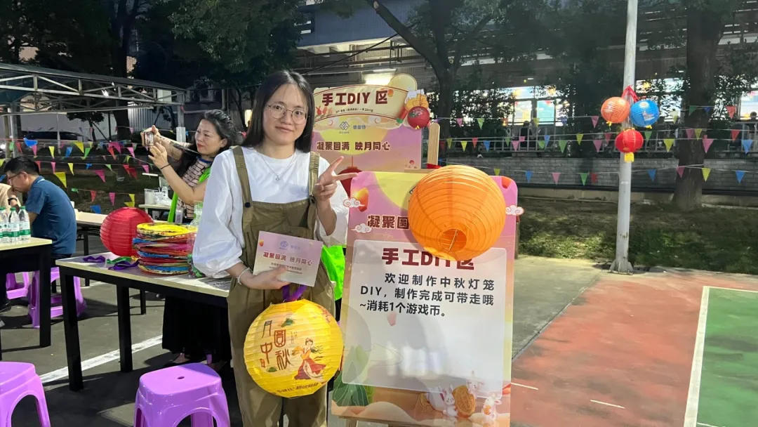 中秋节怎能少了灯笼作伴,活动现场设置了手工DIY区,大家互相帮助制作出一个个精美的灯笼,点亮会场。