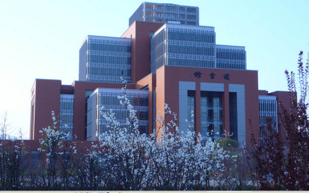 梨花掩映下的呈贡图书馆